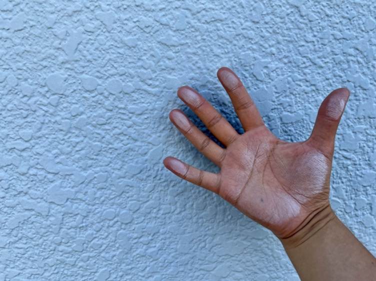 チョーキングの最も分かりやすい症状は、乾いた外壁を触った際に粉が指に付くことです。