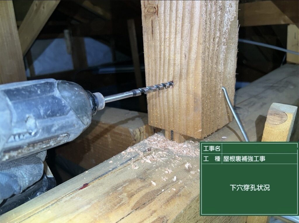 大阪府吹田市千里山西 屋根裏補強工事 地震対策とほぞ抜けに対する補強工事