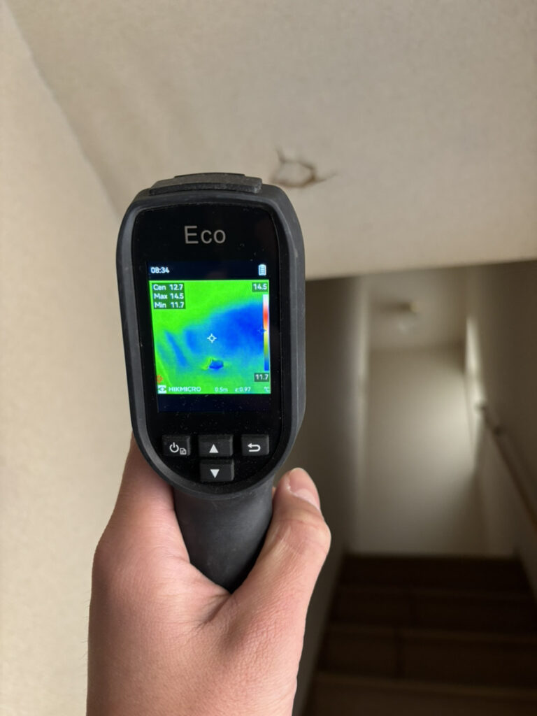 ここ数週間前より雨漏りが発生しているとのご相談をいただき、現地にて散水調査を実施いたしました。