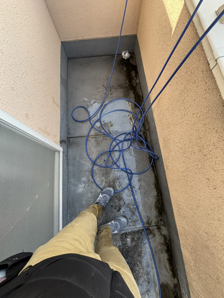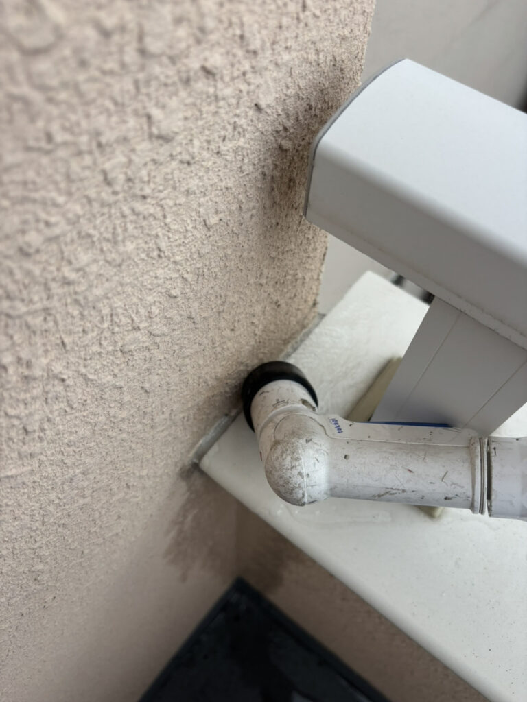 特にベランダは経年劣化により防水性能が低下しており、わずかな隙間からでも雨水が侵入する状態でした。また、ドレン周りは水の集中する箇所のため、劣化が進むと漏水リスクが高まります。加えて、笠木と外壁の取り合い部のシーリングも硬化・ひび割れが見られ、そこからの浸水も確認されました。今後はそれぞれの原因箇所に対して適切な補修・防水工事を行い、再発防止に努めてまいります。