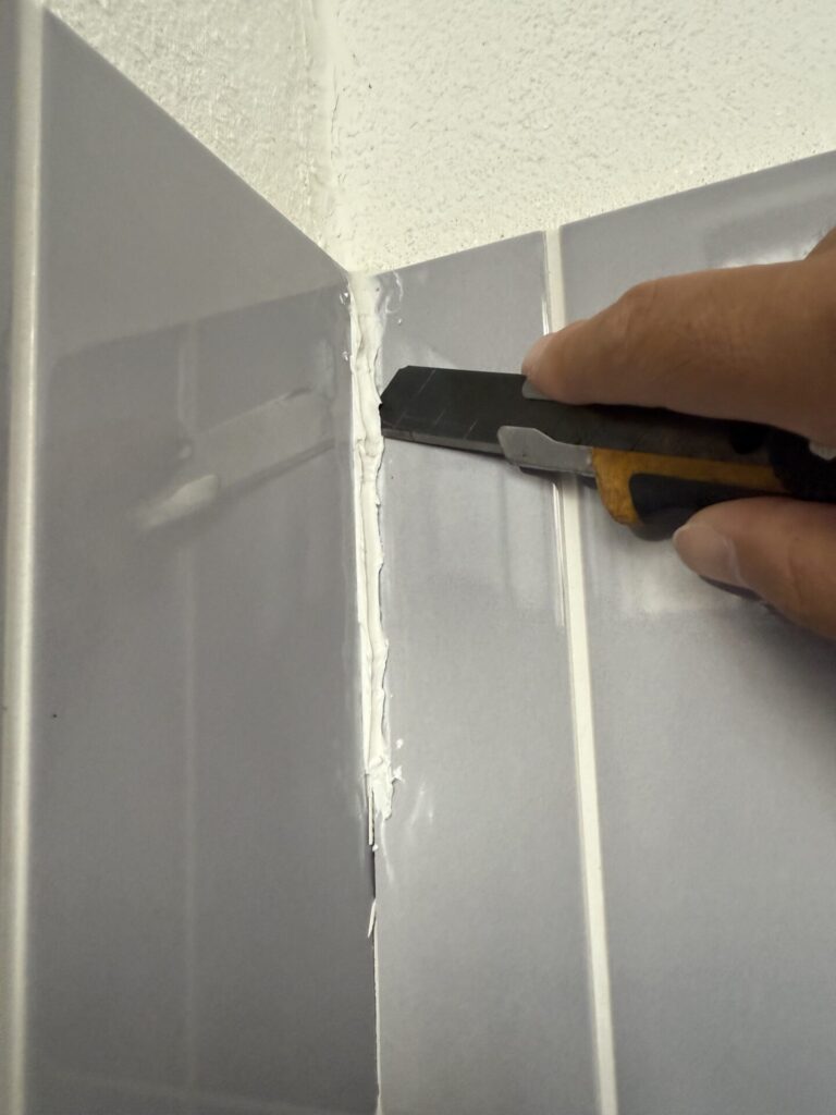 カビや劣化した古いシリコンを、専用の工具で丁寧に取り除きます。