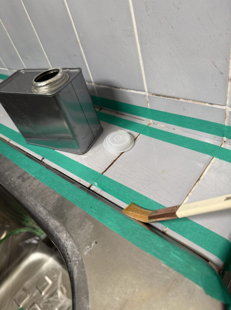 仕上がりを美しくするためにマスキングテープで周囲を保護します。