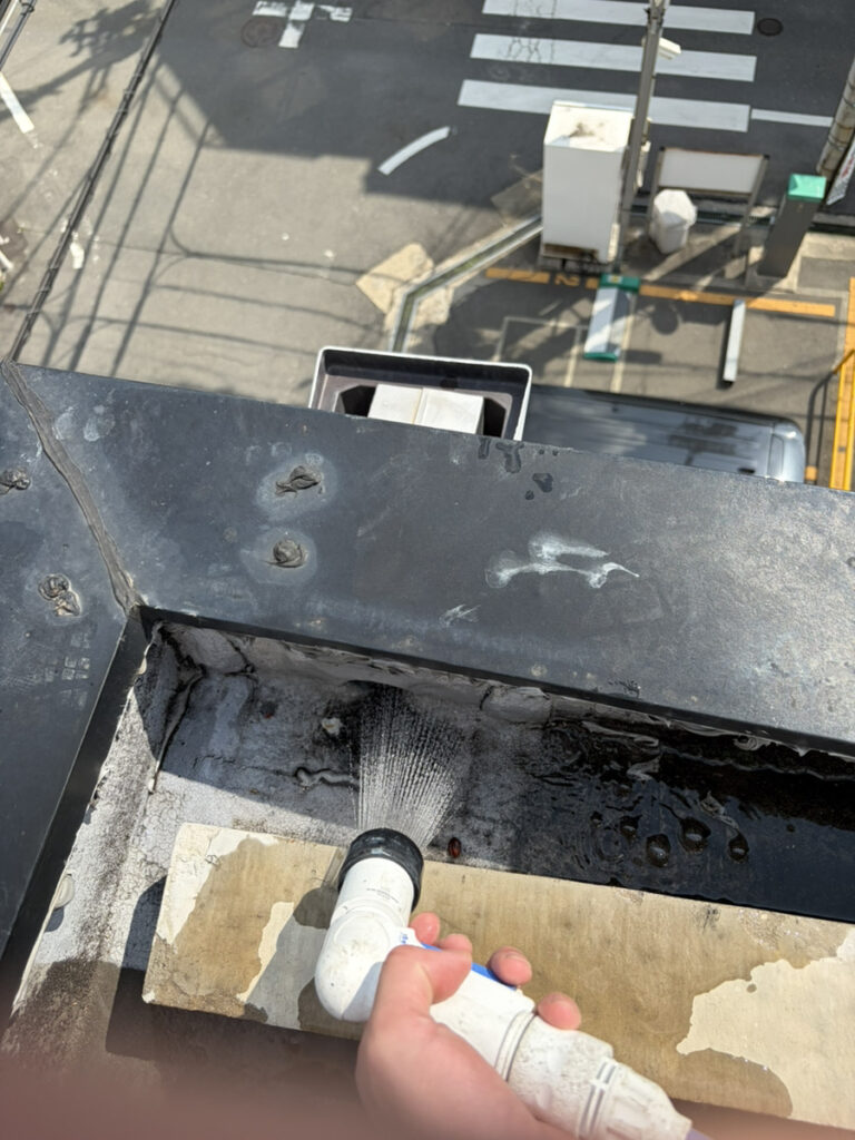 最後に屋上から水を流して確認しました!