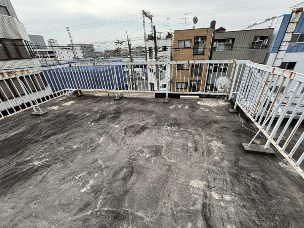 建物は3階建ての鉄骨造で、屋上は陸屋根仕様。