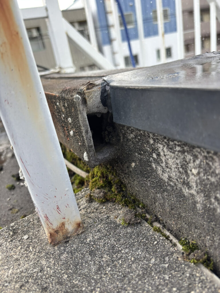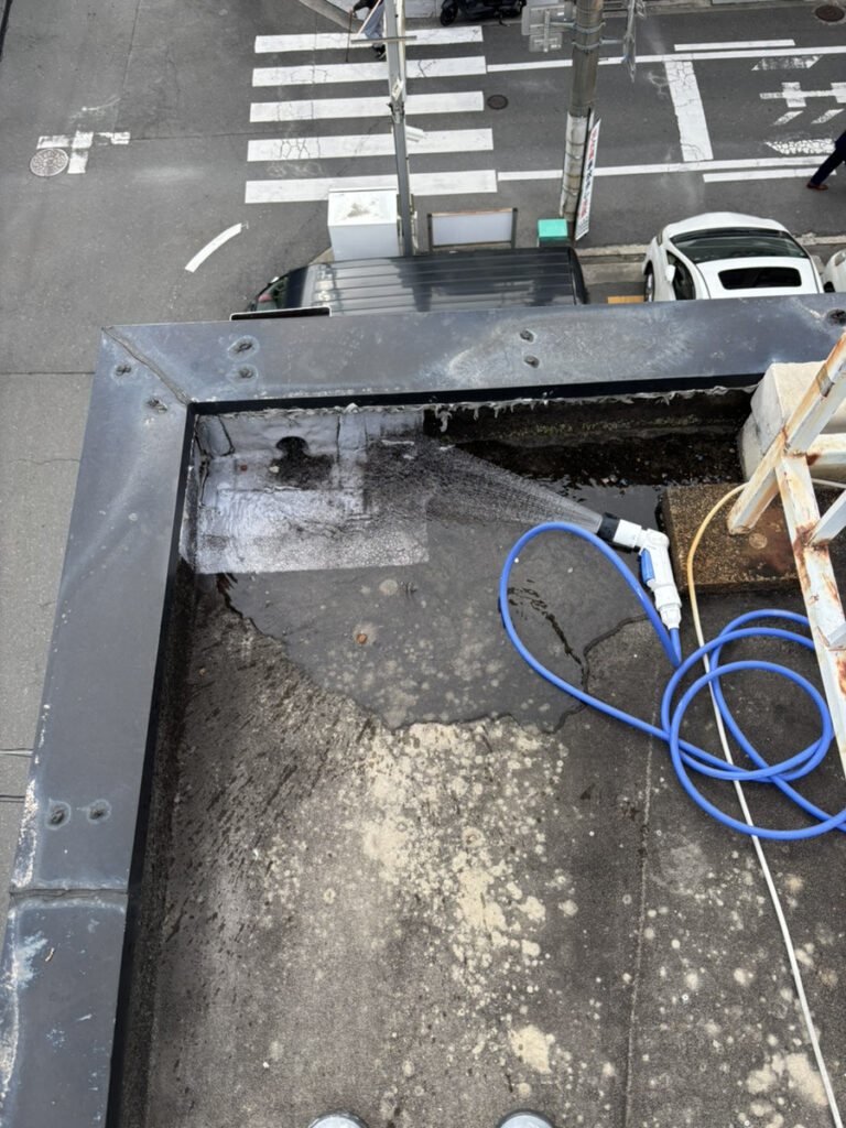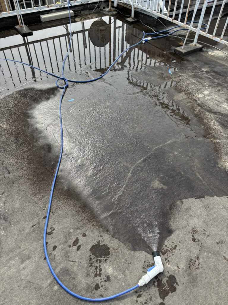 調査の結果、屋上防水の劣化に加え、立ち上がり付近にあるわずかな隙間から雨水が侵入していることが判明しました。一見すると見逃してしまいそうな小さな隙間でも、散水調査をすれば100%原因特定まで可能です。