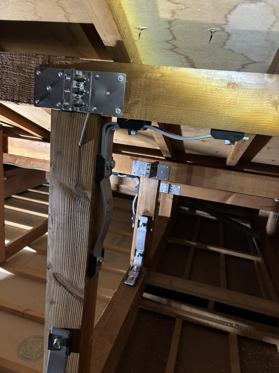 ブログをご覧いただいている皆様こんにちは!雨漏りや、外壁・屋根でお困りの事を解決します!りふぉーむカンパニーです✨ 今回は顧客様からのご依頼で、耐震補強の金物工事を行いました。あわせて屋根裏の点検も実施し、建物の現状を詳しく確認させていただきました。 点検の結果、特に母屋のズレが大きく見られ、構造的にも影響が出ている状態でした。
