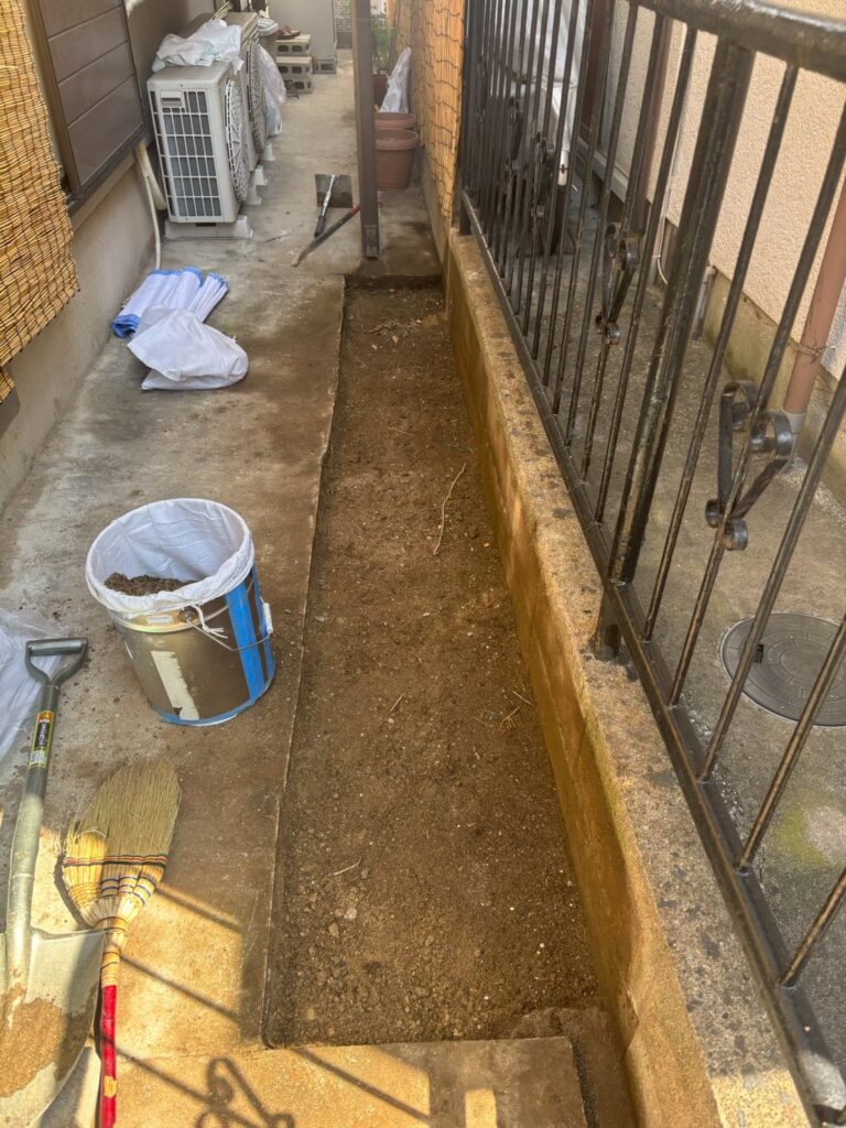 といったお悩みも出やすい場所です。そこで今回は、花壇を撤去してコンクリートの駐輪スペースへ変更する工事を行うことになりました。