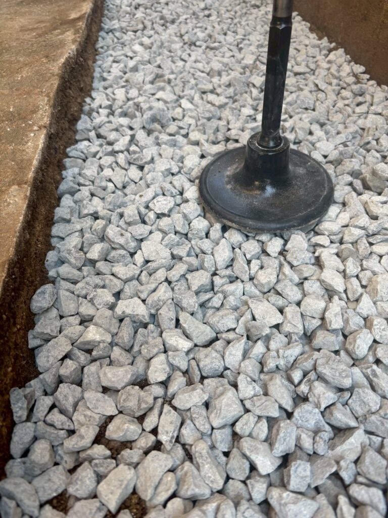 その後、砕石(砂利)を敷き詰めてしっかり転圧し、コンクリートの下地を作っていきます。